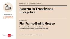 Pier Franco Bodriti Grosso ottiene il certificato di "Esperto in Transizione Energetica", evidenziando l'impegno dell'azienda nell'energia sostenibile.
